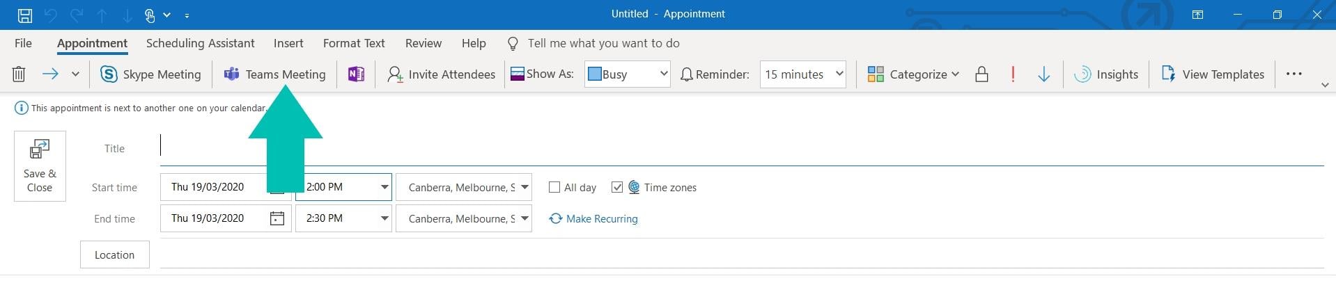 Make sure you have the Teams for Outlook plugin