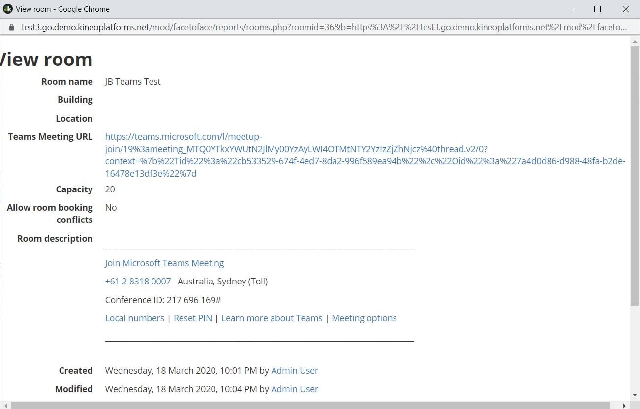 Well done – your virtual classroom is ready. When a user views the room details they will be able to sign-up and click the links to Teams and join the meeting.