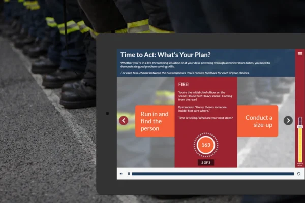 To meet these objectives, Mindtools Kineo and the IAFC designed, developed and deployed The Volunteer Administrative Leadership Series. This engaging and interactive learning experience focuses on practical, applicable knowledge presented in multiple modules via digital storytelling.