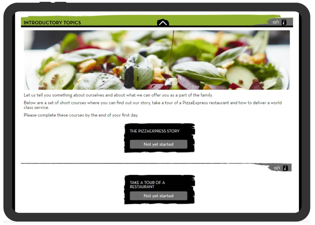 With ambitious growth plans, PizzaExpress needed to revitalise their elearning. When they began looking for a new solution, their existing elearning was limited to off-the-shelf health, safety and food safety courses. Their previous LMS was simply a tick-box tool for compliance. It was clunky, unreliable, and didn’t provide any meaningful data or a central location for records of learning.